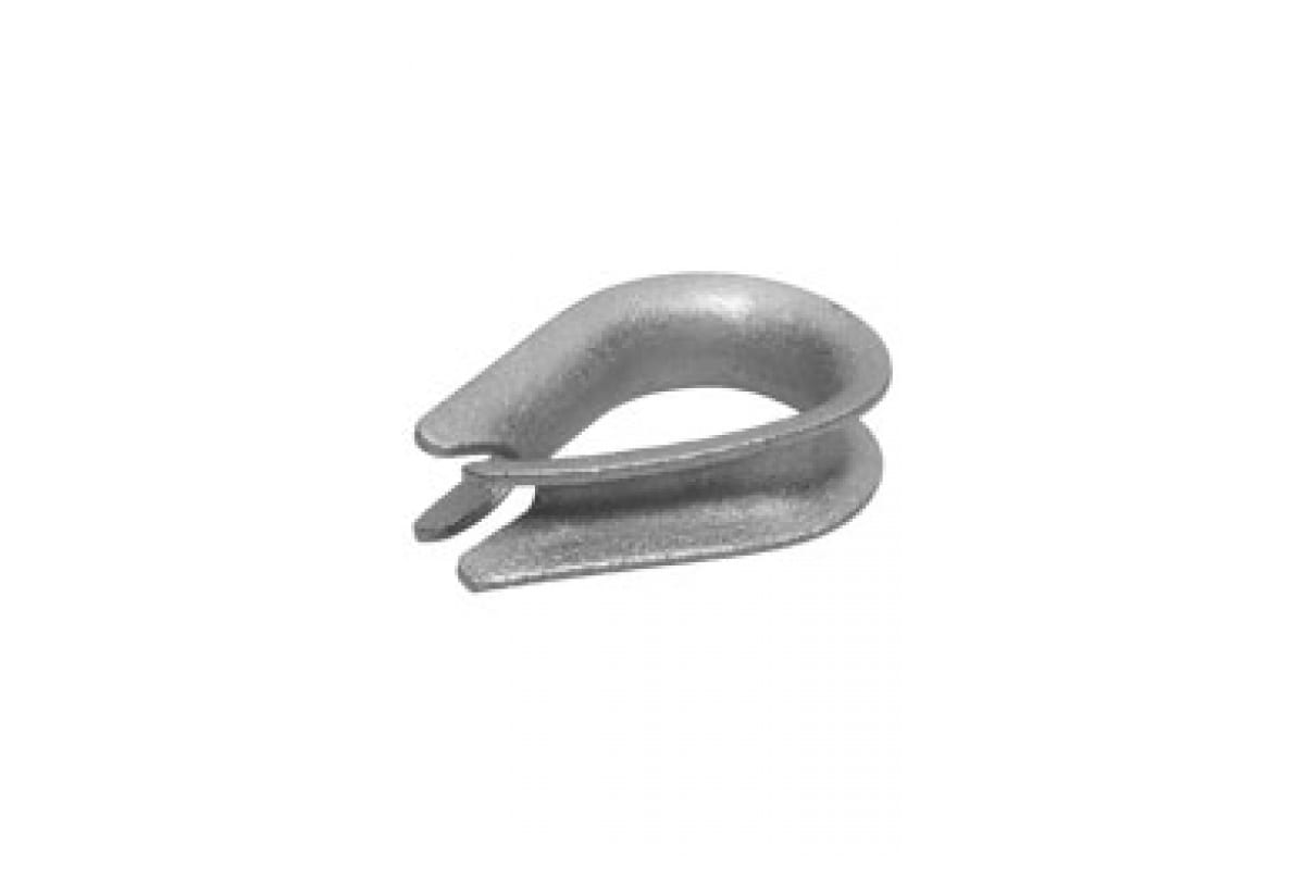 Коуш Зубр 4-304496-10 изготовлен по DIN 6899 из углеродистой стали. Далее он проходит процесс оцинковки, что делает его устойчивым к коррозии. Коуш необходим для получения петель на концах троса. При его применении петля получается более плавной. Так же коуш предохраняет трос от перетирания.
