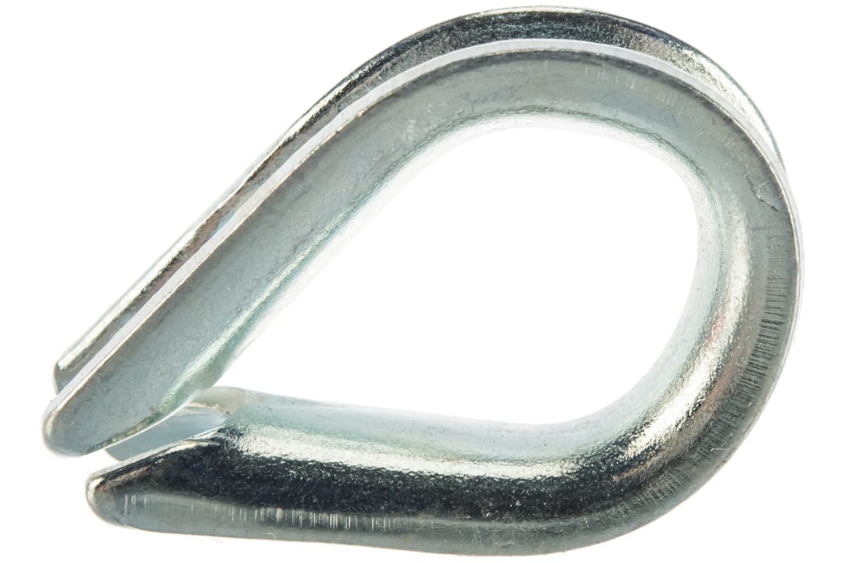 Коуш Зубр 4-304495-05 изготовлен по DIN 6899 из углеродистой стали. Далее он проходит процесс оцинковки, что делает его устойчивым к коррозии. Коуш необходим для получения петель на концах троса. При его применении петля получается более плавной. Так же коуш предохраняет трос от перетирания.