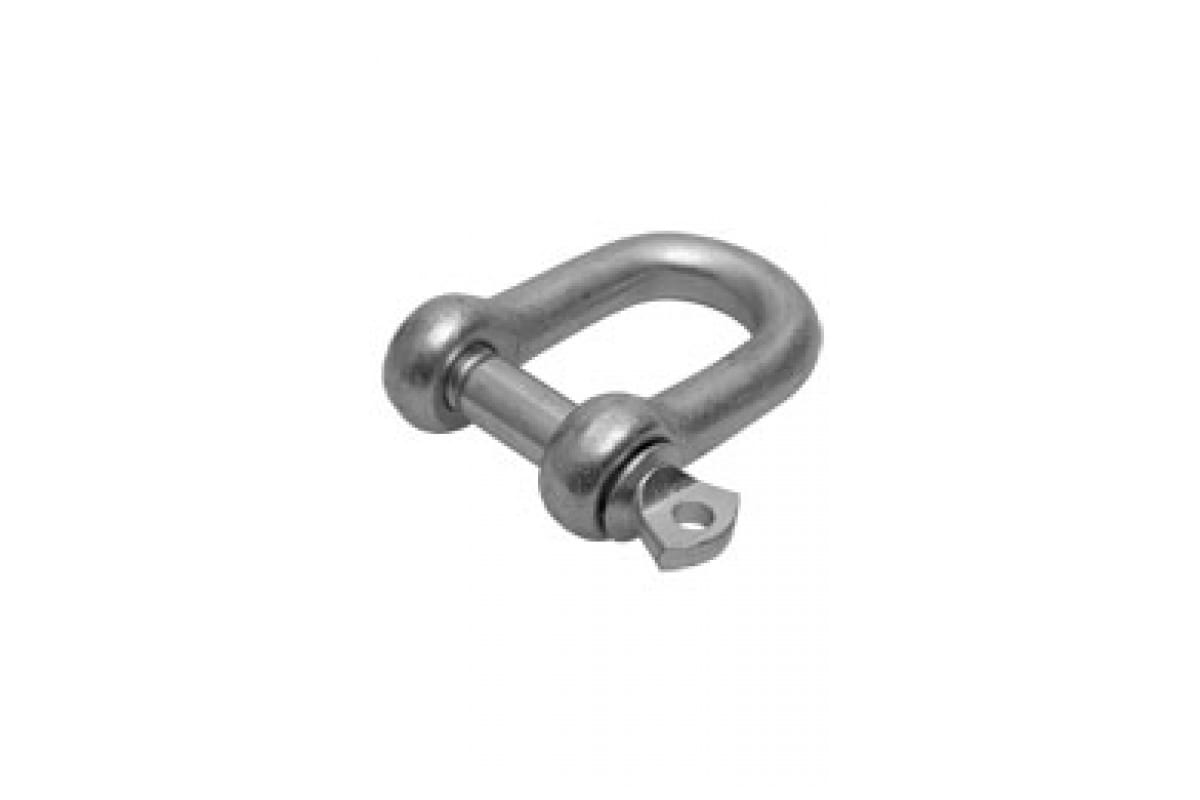 Такелажная скоба Зубр 4-304516-05 изготовлена из оцинкованной стали и не подвержена коррозии. Ее используют когда необходимо быстро соединить цепи и тросы между собой, а также для крепления их к других конструкциям. Штифт заворачивают до отказа рукой, а затем зажимают его каким-либо инструментом.