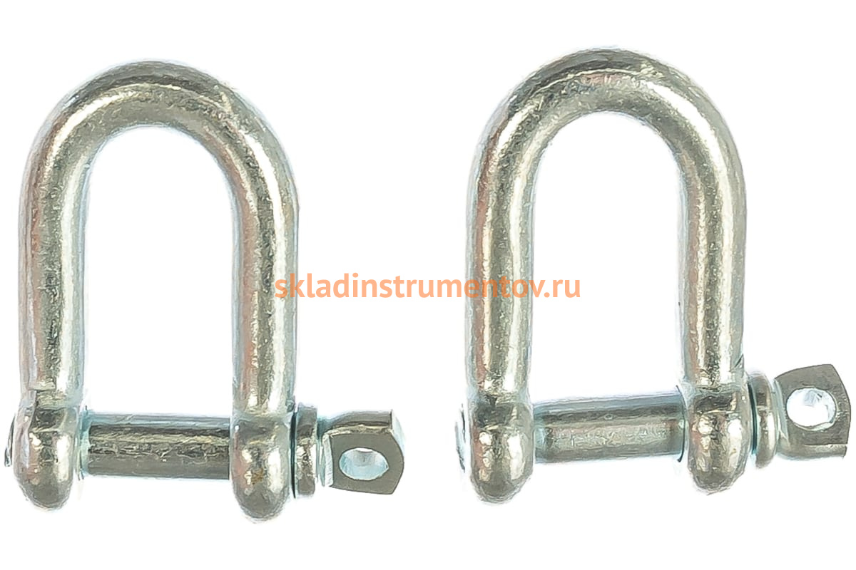 Такелажная скоба Зубр 4-304516-06 изготовлена из оцинкованной стали и не подвержена коррозии. Ее используют когда необходимо быстро соединить цепи и тросы между собой, а также для крепления их к других конструкциям. Штифт заворачивают до отказа рукой, а затем зажимают его каким-либо инструментом.