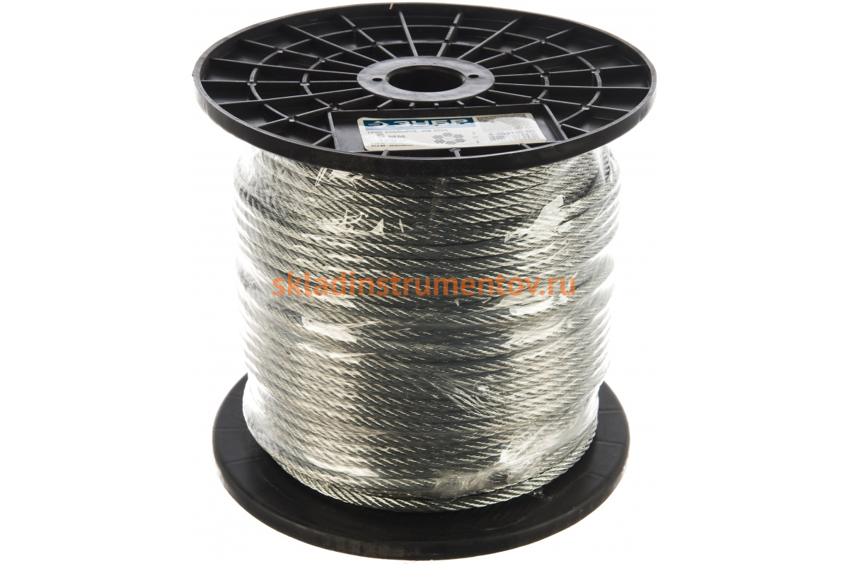 Стальной трос Зубр DIN 3055, оцинкованная сталь, синтетическая сердцевина, d=6 мм, L=120 м 4-304110-06 предназначен для перемещения грузов и их подъема на нужную высоту с помощью различных грузоподъемных устройств. Он изготовлен из оцинкованной стали с синтетической сердцевиной. Для удобства применения и хранения трос накручен на катушку.