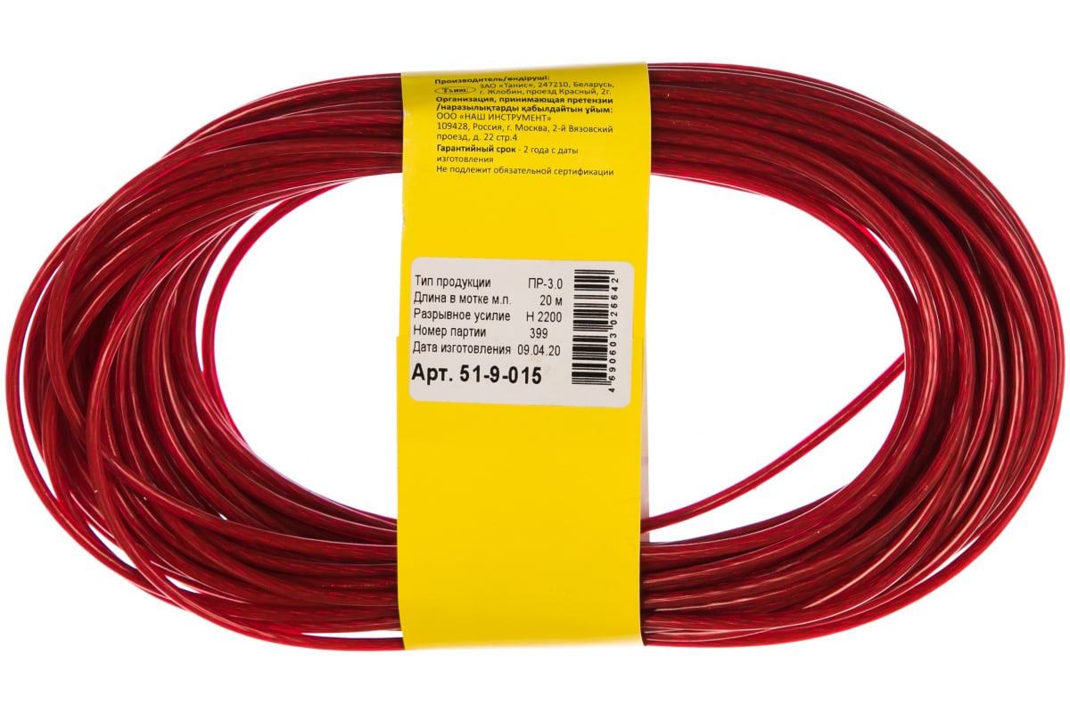 —Металлополимерный трос РемоКолор красный полупрозр ПР-3 0, 20м п 51-9-015—
