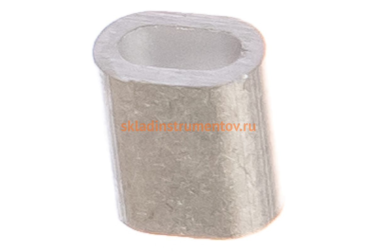 Зажим Зубр 4-304475-02 изготовлен по DIN 3093 из алюминия. Его используют при изготовлении петель на концах троса методом опрессовки. Необходимо, чтобы конец троса выходил из зажима на расстояние не менее чем 1/2 диаметра троса.