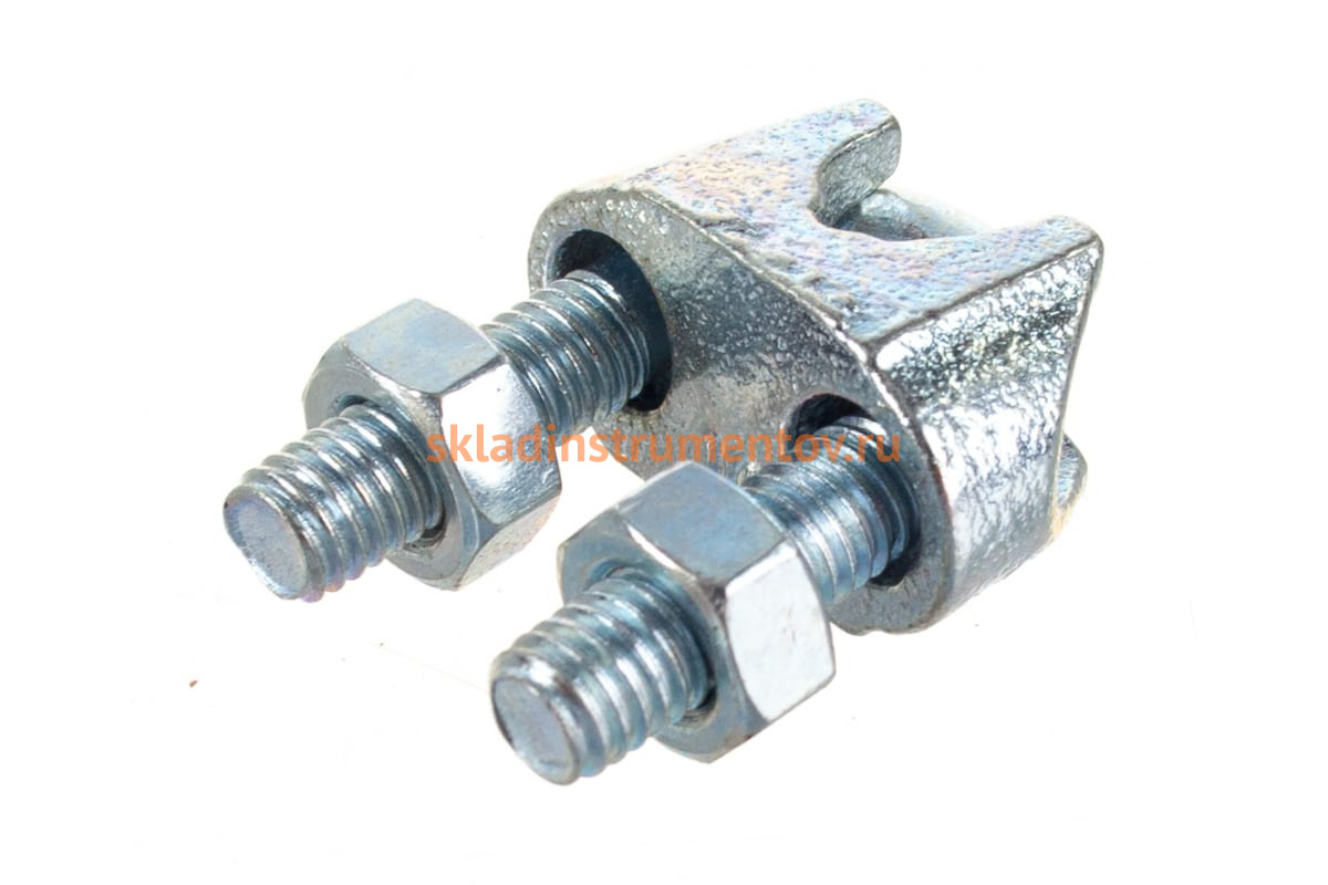 Зажим Зубр 4-304415-10 изготовлен по DIN 741 из оцинкованной стали, что делает его устойчивым к коррозии. Используют для создания петель на концах троса. Для этого в петлю троса закладывается коуш, а после него устанавливаются зажимы. Количество зажимов зависит от диаметра троса. Сверху на «свободный» конец троса устанавливается "U" образный болт. Рекомендуемое расстояние между зажимами равно шестикратному диаметру троса.