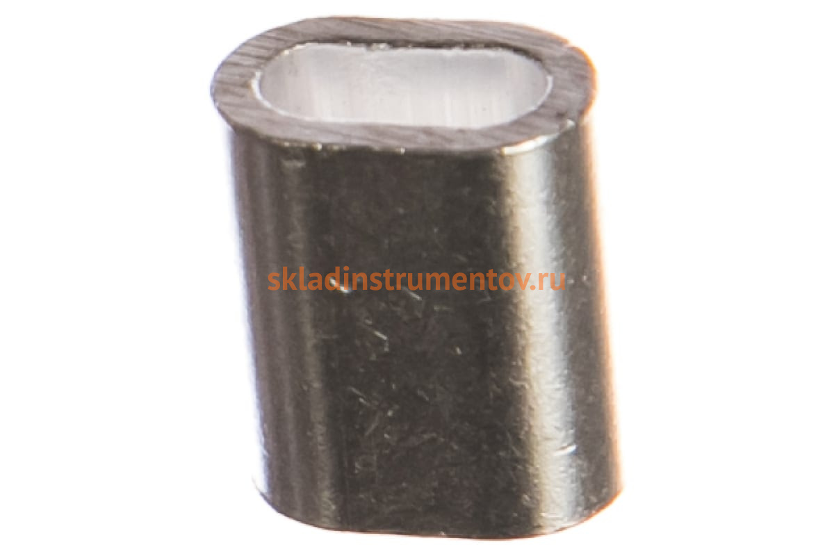 Зажим Зубр 4-304476-03 изготовлен по DIN 3093 из алюминия. Его используют при изготовлении петель на концах троса методом опрессовки. Необходимо, чтобы конец троса выходил из зажима на расстояние не менее чем 1/2 диаметра троса.