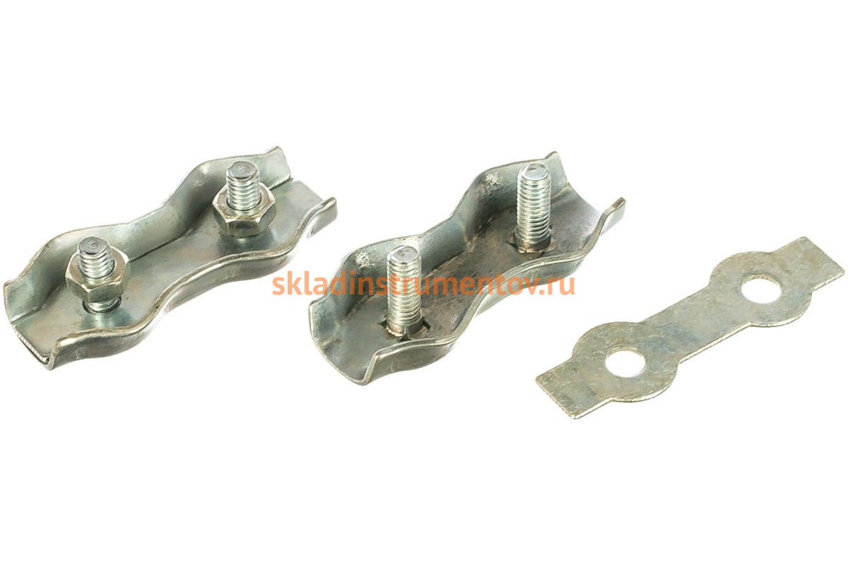 Зажим Зубр 4-304445-06 применяется для формирования петель на концах троса. Свободный конец троса помещается в зажим, а затем в полученную петлю закладывается коуш, после которого трос помещается с другой стороны винта. Необходимо, чтобы конец троса, помещаемый в зажим, выходил из него на расстояние не менее чем 1/2 диаметра троса. Сверху помещается прижимная пластина, и все соединение накрепко закручивается при помощи гаек. Зажим изготовлен из оцинкованной стали. Тип фасовки — ТФ5.