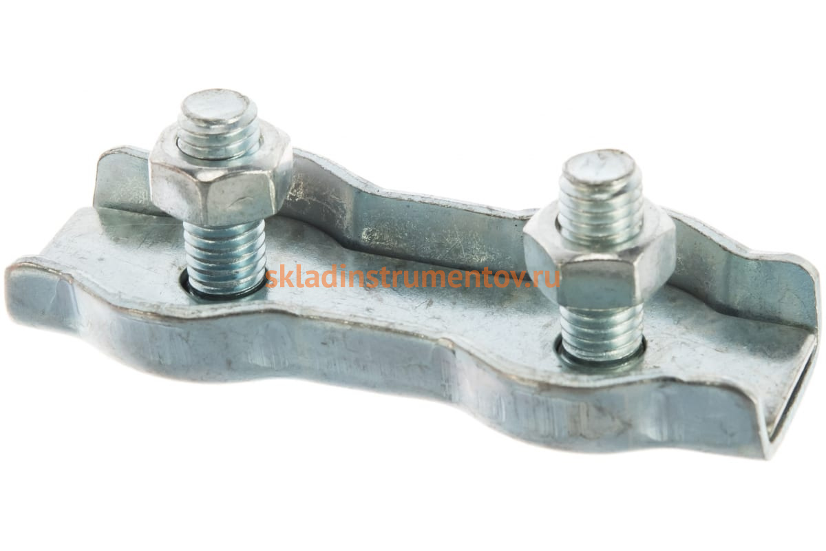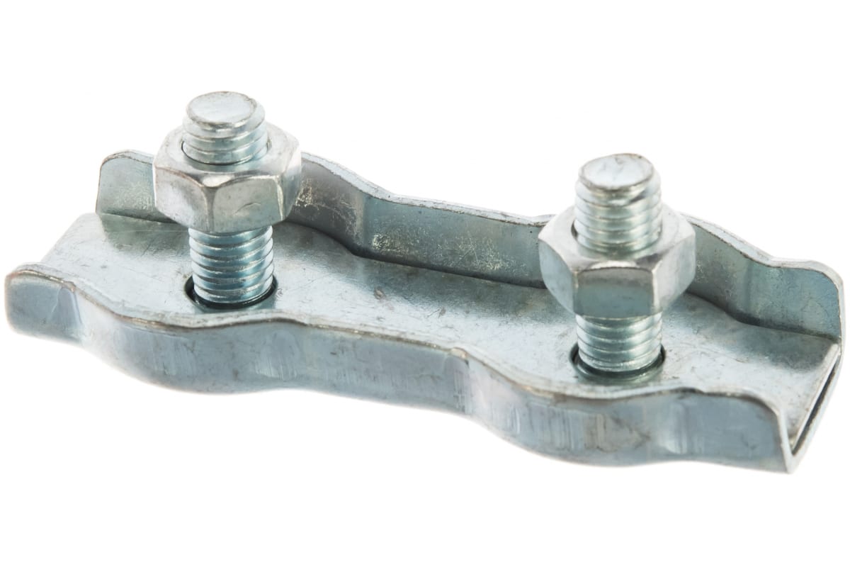 Зажим Зубр 4-304445-08 применяется для формирования петель на концах троса. Свободный конец троса помещается в зажим, а затем в полученную петлю закладывается коуш, после которого трос помещается с другой стороны винта. Необходимо, чтобы конец троса, помещаемый в зажим, выходил из него на расстояние не менее чем 1/2 диаметра троса. Сверху помещается прижимная пластина, и все соединение накрепко закручивается при помощи гаек. Зажим изготовлен из оцинкованной стали. Тип фасовки — ТФ5.