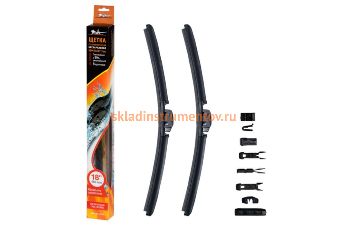 Бескаркасная щетка стеклоочистителя (450 мм, 18", комплект) Airline AWB-BK-450K равномерно плотно прижимается к поверхности, повторяя форму стекла для максимально эффективного удаления осадков в любое время года. Воздушный поток в случае движения с высокой скоростью не влияет на качество очистки стекла благодаря аэродинамической конфигурации модели. Легкость скольжения обусловлена покрытием резиновых элементов тонким слоем графита.