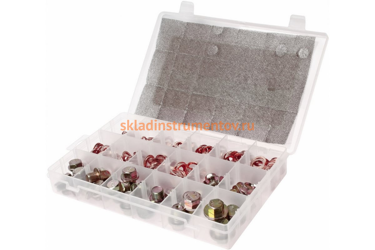 Медная шайба и пробка поддона картера в боксе 534шт JTC-2019 используются при ремонте и техническом обслуживании автомобильного транспорта. Комплект крепежа удобно расфасован по типоразмеру в отдельных ячейках пластикового бокса с крышкой.