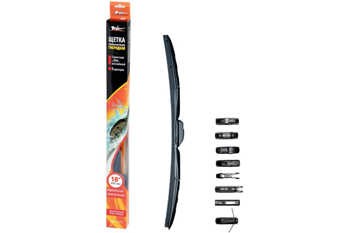 Гибридная щетка стеклоочистителя (450 мм/18 дюймов, 8 адаптеров) Airline AWB-H-450 отличается легкостью скольжения и бесшумностью работы при любых погодных условиях. В комплект поставки входит набор из 8 адаптеров, что позволяет использовать изделие с 99% автомобилей. При изготовлении модели используется резина с добавлением озона, что гарантирует высокую эффективность очистки и долгий срок службы.