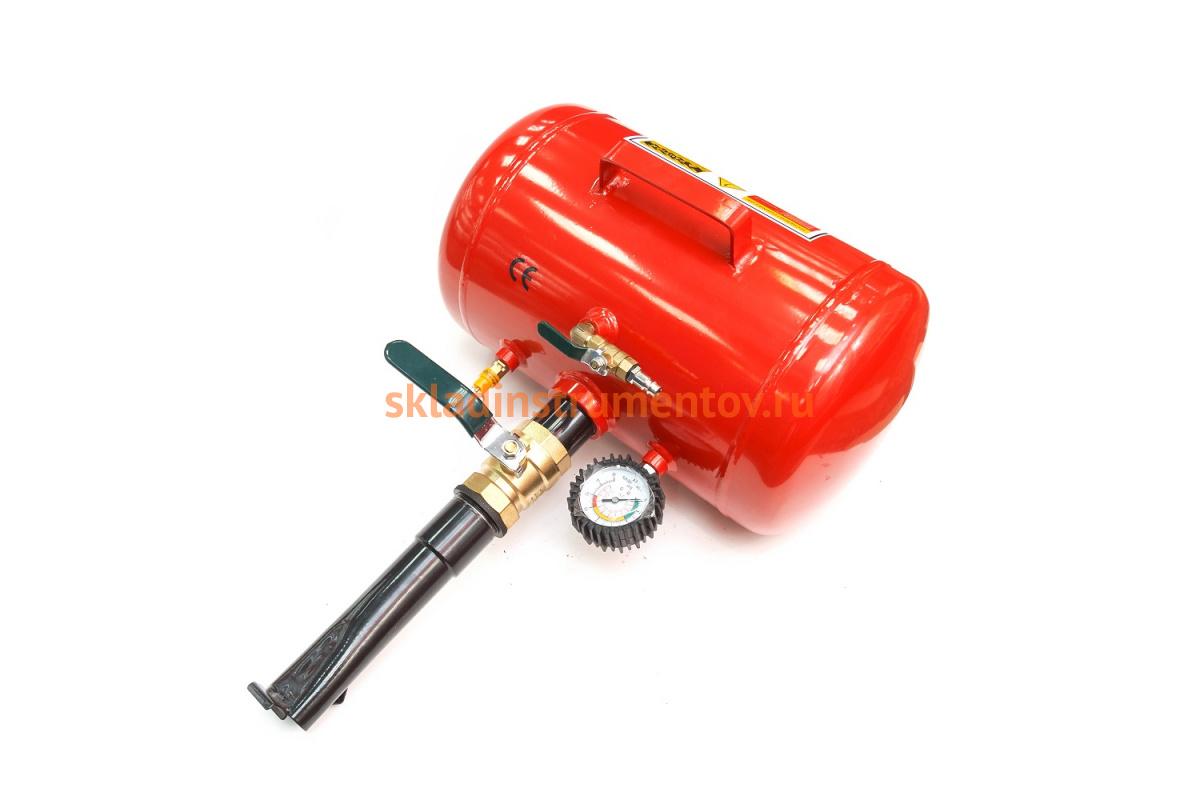 Пневмопушка 19 л для взрывной накачки СТАНКОИМПОРТ TRAD018 — это компактное устройство с ресивером (баллоном), в который закачивают сжатый воздух, используя компрессор. Применяется для обслуживания колес мотоциклов, легкового и грузового транспорта, малой сельскохозяйственной техники. Пневмопушка имеет легкий принцип работы. В ресивер закачивают воздух до максимально разрешенного производителем давления, затем через сопло в шину подают воздух под высоким давлением, помогая этим резине принять первоначальную форму. С помощью встроенного манометра обеспечивается контроль давления воздуха в пневмопушке. Бустер не качает колесо полностью, после восстановления формы резины нужно завершить накачку компрессором.
