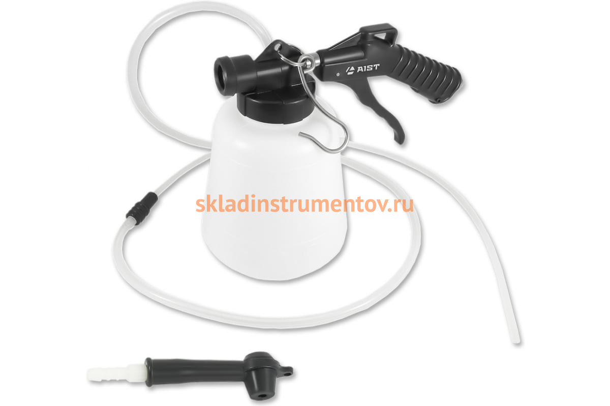 Емкость для вакуумной замены тормозной жидкости и откачивания жидкостей 1л AIST 00-00009168 широко применяется в автосервисах и на СТОА для прокачивания тормозной системы и откачивания различных технических жидкостей с помощью сжатого воздуха.