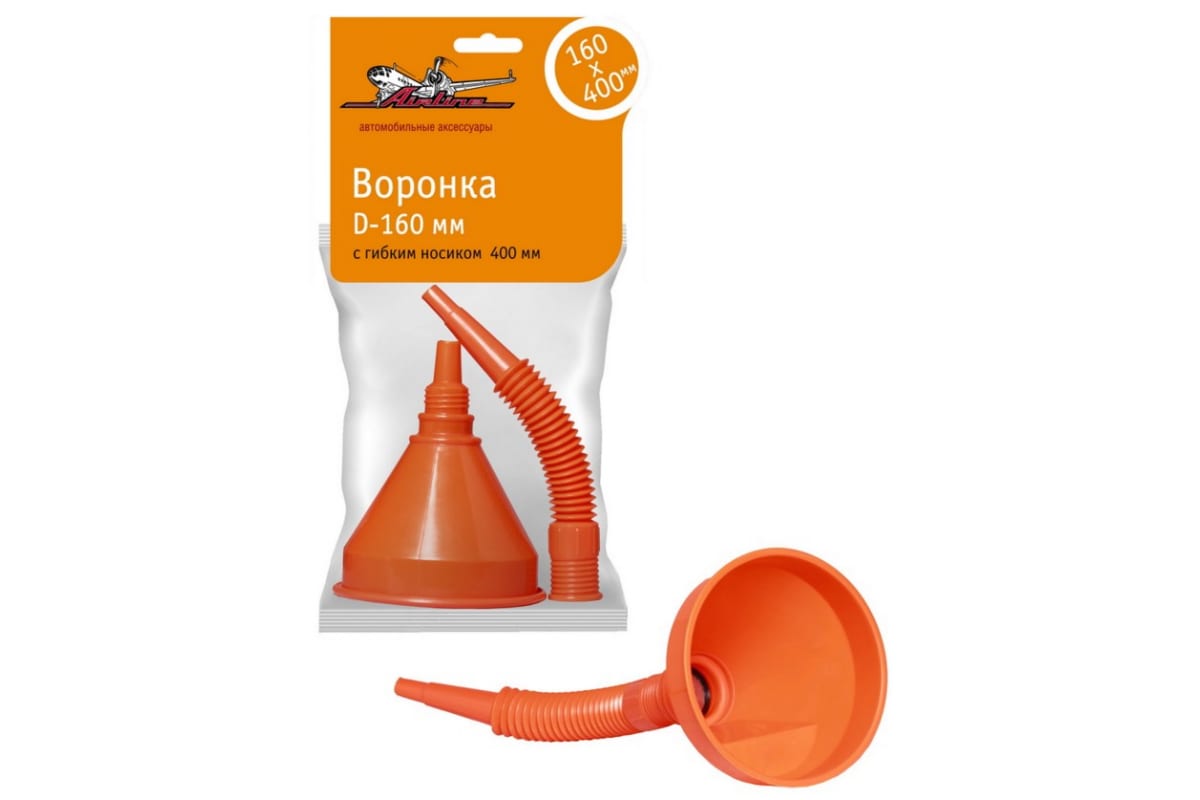 Воронка с гибким носиком (D-160 мм, 400 мм) Airline APF-03 используется для заливания топлива в бак автомобиля. Гибкий носик способствует удобству пользователя в процессе заправки. Разборная конструкция облегчает хранение и очистку приспособления.