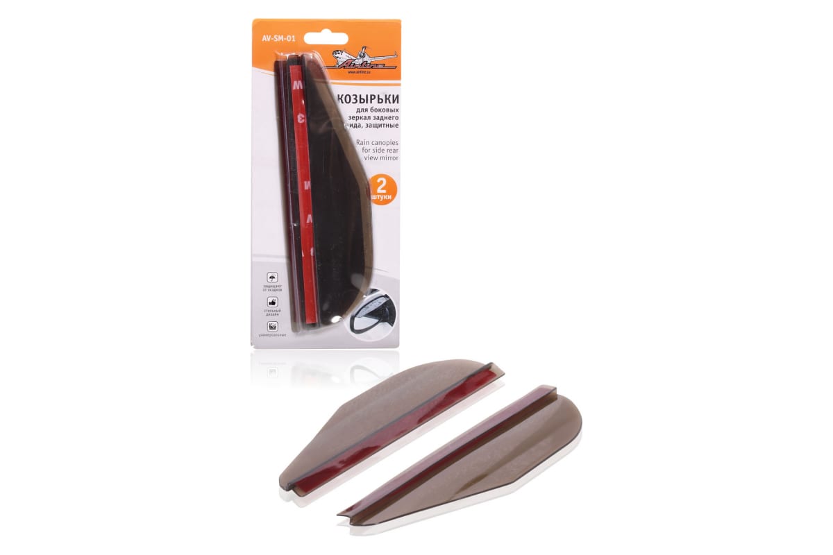 Козырьки дефлекторы для боковых зеркал заднего вида Airline AV-SM-01 выполнены из затемненного пластика.