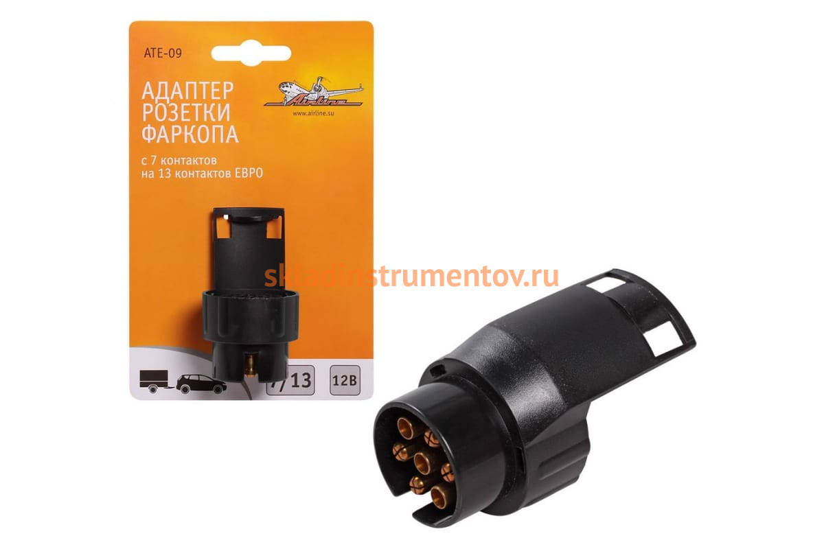 Адаптер розетки фаркопа Airline с 7 контактов на 13 контактов ЕВРО ATE-09 выполнен из прочного пластика. Электрические разъёмы из латуни обеспечивают надёжный контакт. Резиновые уплотнители защищают от грязи и влаги.