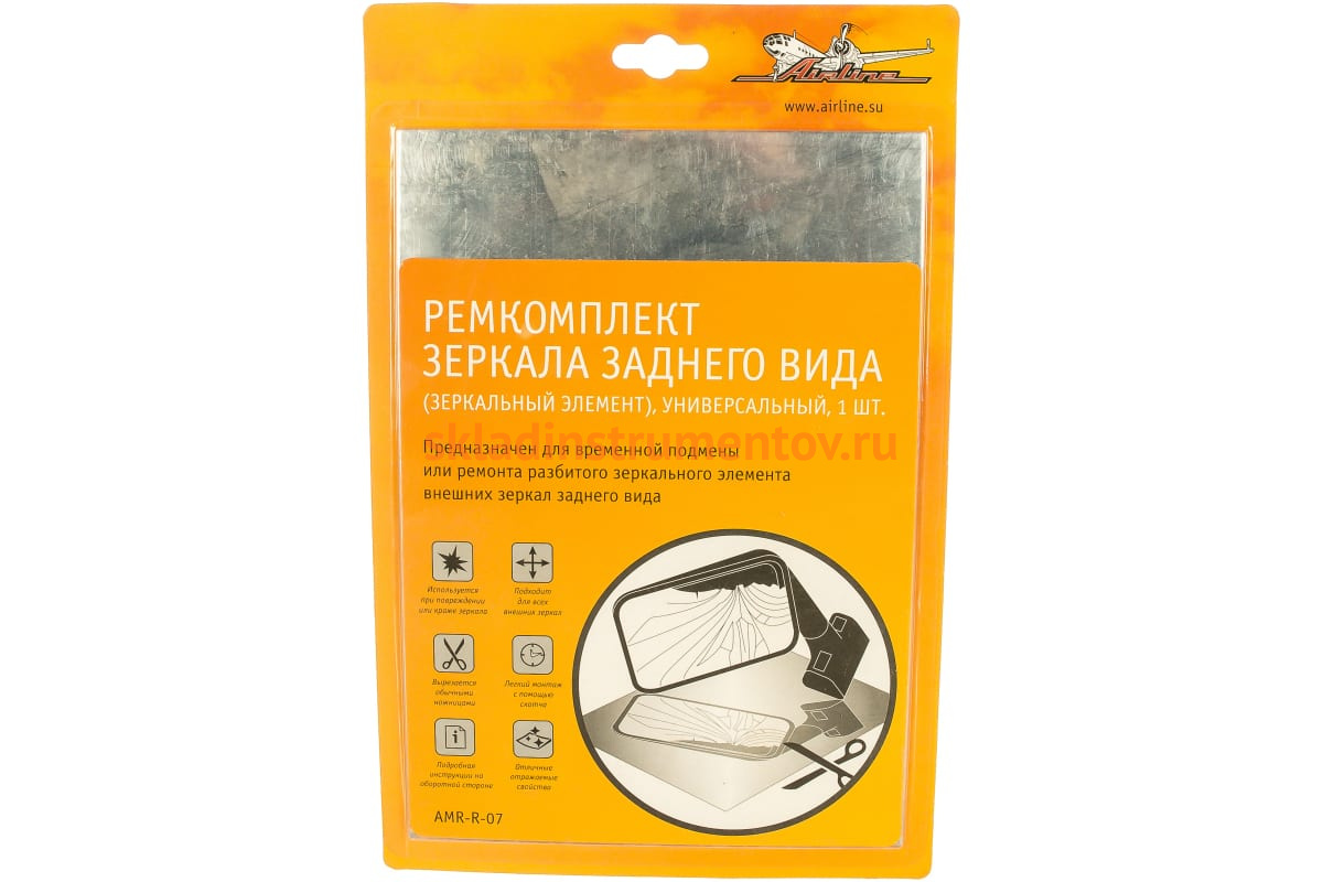 Ремкомплект зеркала заднего вида Airline AMR-R-07 применяется для временной подмены или ремонта разбитого зеркального элемента внешних зеркал заднего вида.