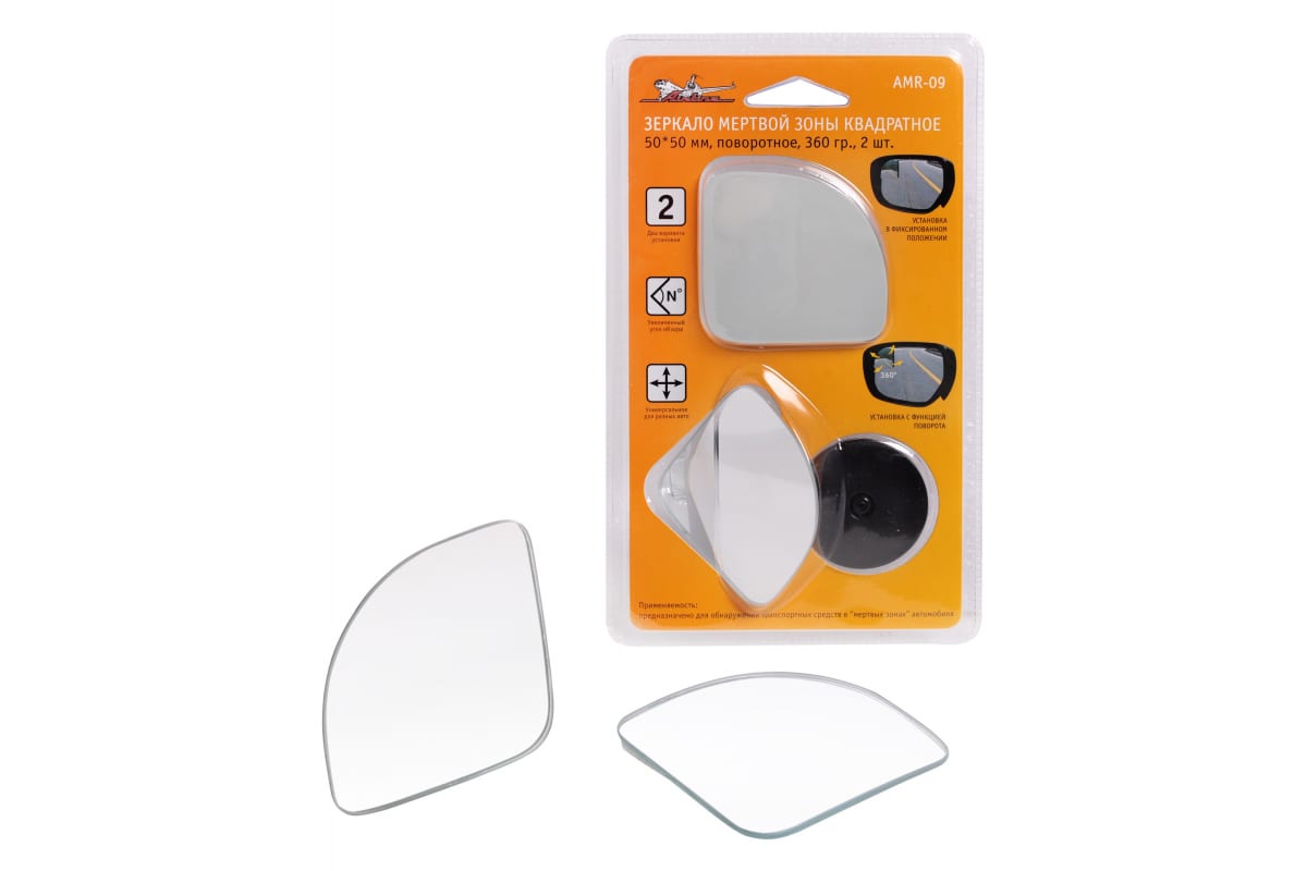 Квадратное зеркало мертвой зоны Airline 50х50 мм, поворотное, 360 градусов, 2 шт. AMR-09 - приспособление для безопасного вождения автомобиля.