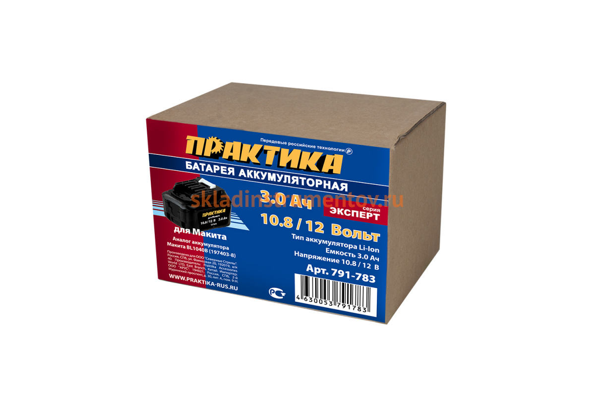 Аккумулятор ПРАКТИКА 791-783 предназначен для использования с аккумуляторными инструментами Makita. Оснащен индикатором уровня заряда, что позволяет контролировать его заряд. Литий-ионные аккумуляторные батареи могут храниться более длительный период времени, по сравнению с NiCd и NiMH не теряя заряда. Хранить в заряженном состоянии.
