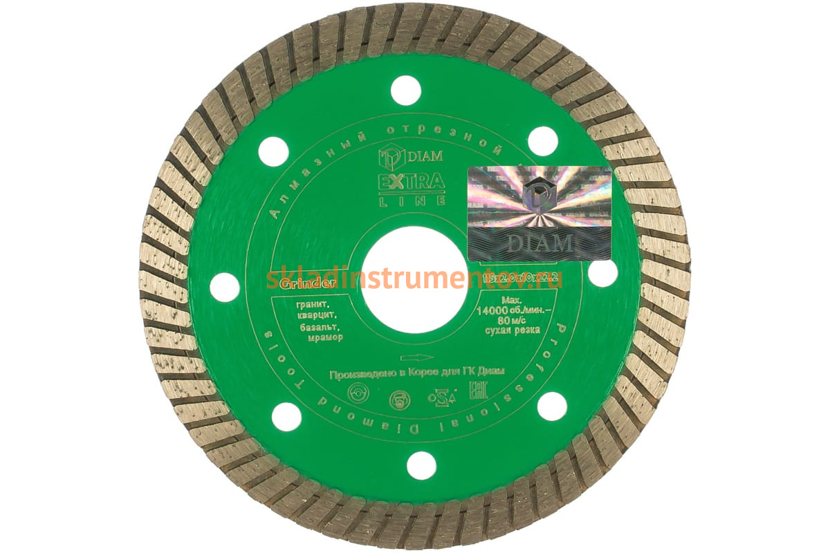 Диск алмазный Turbo GRINDER Diam 000545 предназначен для ручных резчиков. Применяется для сухого реза гранита, базальта, сланца и других твердых материалов.