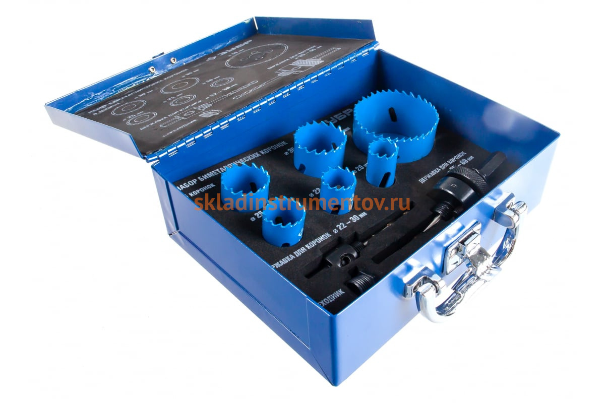 Набор биметаллических коронок "ЭКСПЕРТ" ЗУБР 29531-H6-1 подходит для всех дрелей. Коронки изготовлены из стали P2M10K8 с содержанием кобальта (8%), что увеличивает срок службы и износостойкость. Благодаря улучшенной геометрии и специальному углу резцов, сверление получается наиболее точным и чистым. Глубина сверления до 38 мм с диаметрами отверстий 20, 22, 25, 30, 35, 60 мм. Необходимо совместное использование с державкой и центрирующим сверлом (входят в комплект).