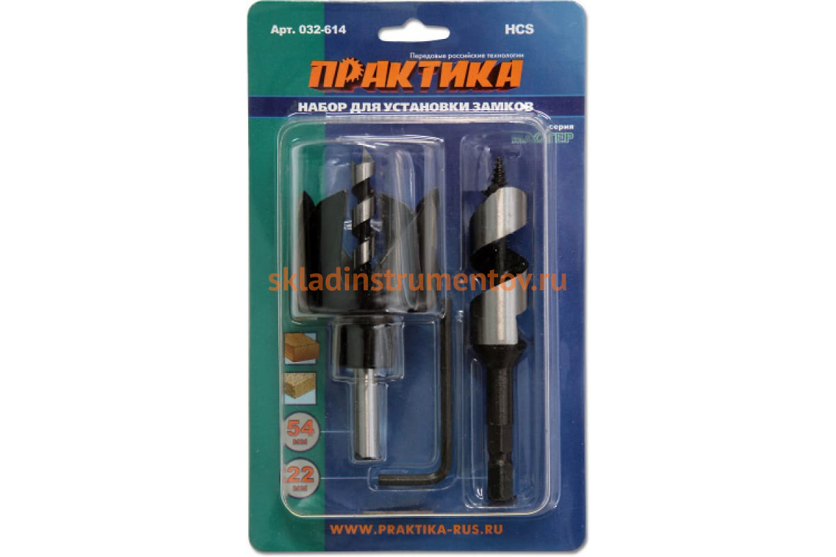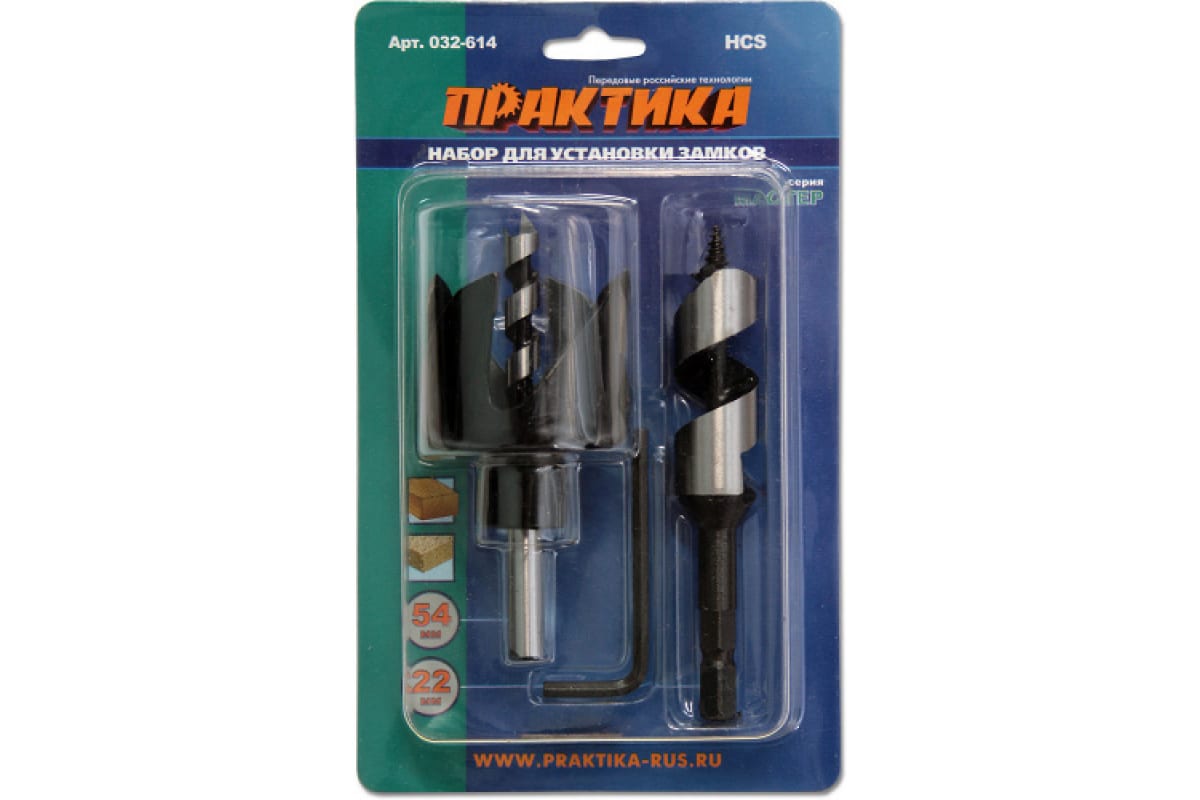 —Набор для замков (коронка 54 мм; сверло 22 мм; держатель) ПРАКТИКА 032-614—