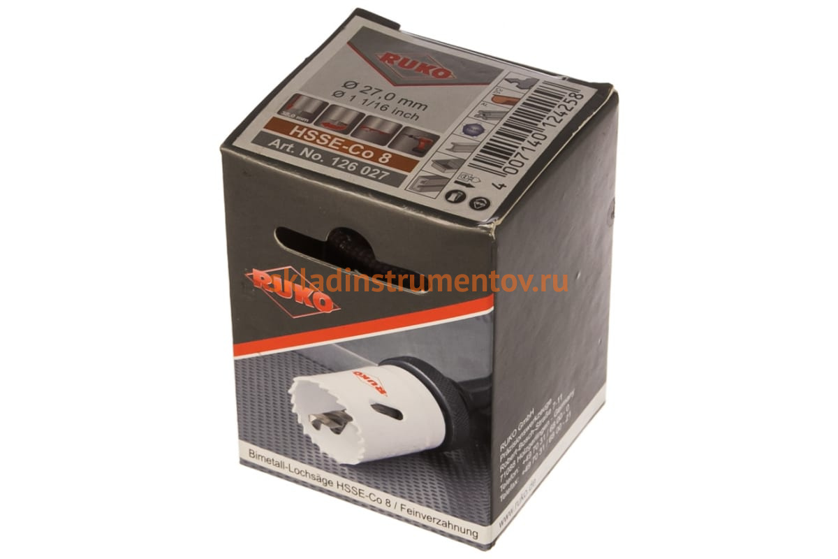 Биметаллическая коронка HSS Co 8% RUKO 126027 применяется с дрелями, легкими перфораторами и со стационарными станками в безударном режиме. Предназначена для сверления отверстий в черных и цветных металлах, пластике и прочих материалах. Корпус коронки изготовлен из углеродистой, а режущая часть из быстрорежущей стали с содержанием кобальта — 8%. Отверстия получаются точными и чистыми. Коронка используется в комплекте с хвостовиком. Хвостовик в комплект поставки не входит. При сверлении рекомендуется использовать СОЖ.