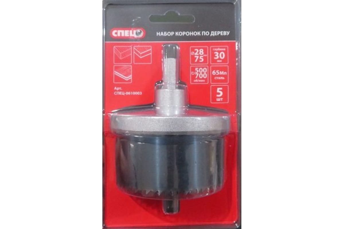 —Набор коронок по дереву (5 шт; 28-75 мм; 30 мм) Спец СПЕЦ-0610003