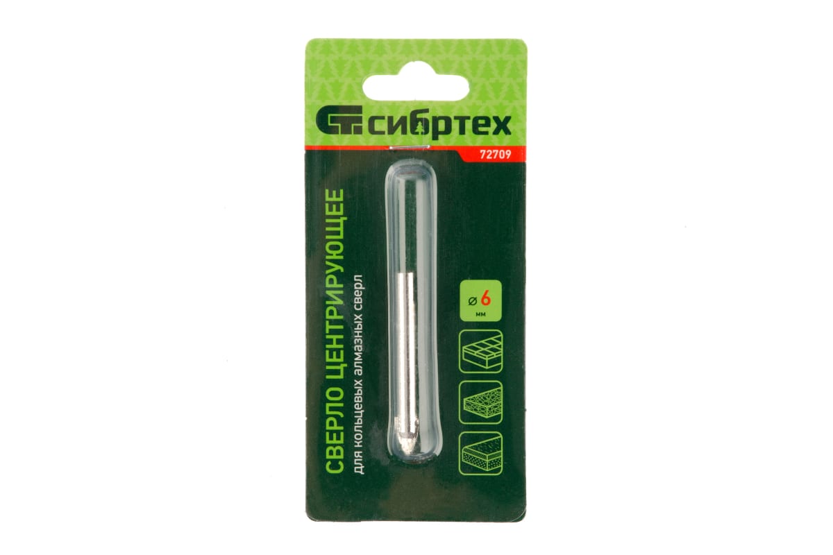 Сверло центровочное СИБРТЕХ 72709 применяется в качестве направляющего при работе с кольцевыми алмазными сверлами ТМ СИБРТЕХ. Предназначено для сверления отверстий в керамической плитке (кафеле), стекле или природном камне. На начальном этапе сверления центрирующее сверло входит в материал и является осью будущего отверстия. Как только кольцевое алмазное сверло углубится в материал примерно на 1 см, центрирующее сверло рекомендуется снять и продолжить сверление без него.