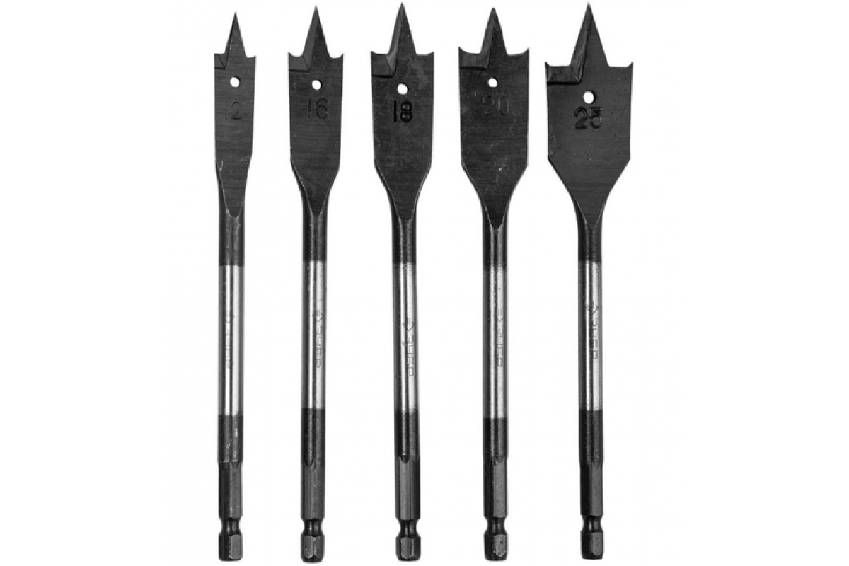 Набор перьевых сверл Зубр 29505-H5 используется дома, в мастерских, на производстве. Предназначены для сверления не сквозных отверстий или отверстий на большую глубину при помощи переходников. Подходят для работы по дереву, гипсокартону, пластику. Сверла изготовлены из инструментальной стали высокого качества. Конструкция предусматривает свободный отвод стружки. Центрирующее острие повышает точность и качество сверления. Надежное крепление в патроне без проскальзывания обеспечивает шестигранный хвостовик. Также хвостовик имеет проточку для быстрозажимных патронов и адаптеров.