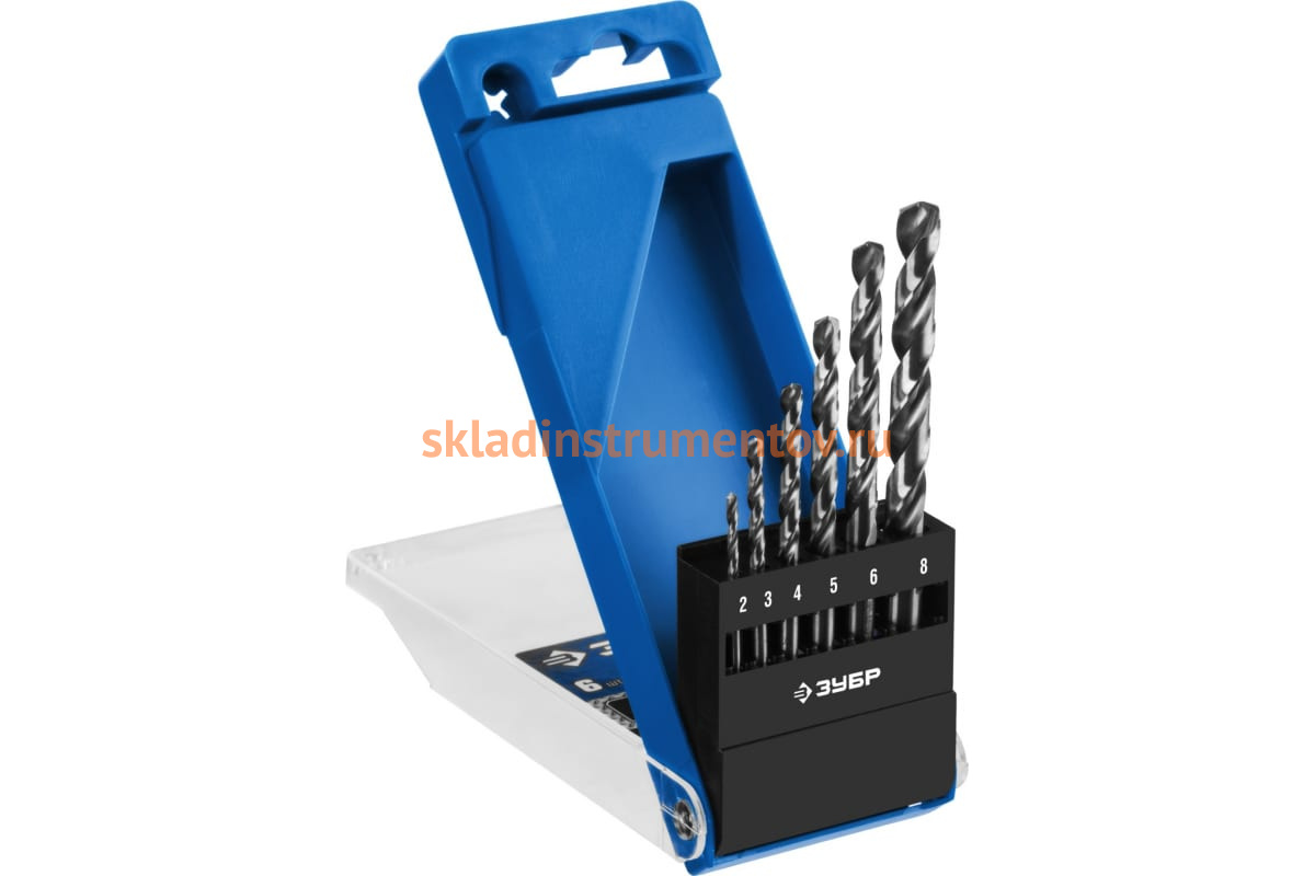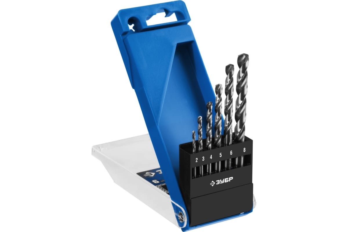 —Набор сверл по металлу Проф 2-8 мм, класс А, сталь Р6М5, 6 шт. Зубр 29625-H6
