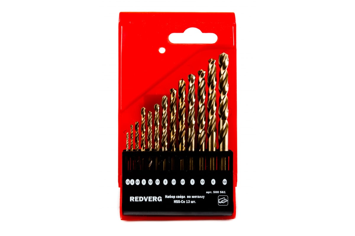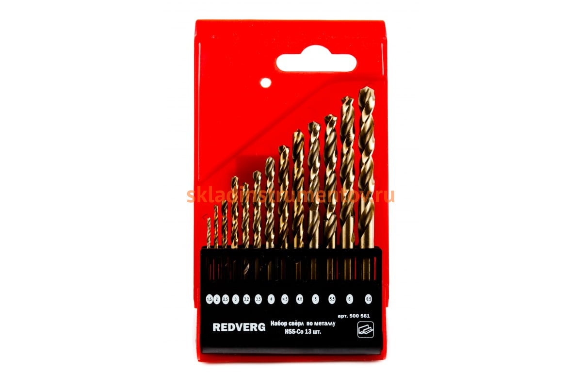 —Набор сверл по металлу кобальтовые HSS-Co, 1,5-6,5 мм, 13 шт. REDVERG 6621092