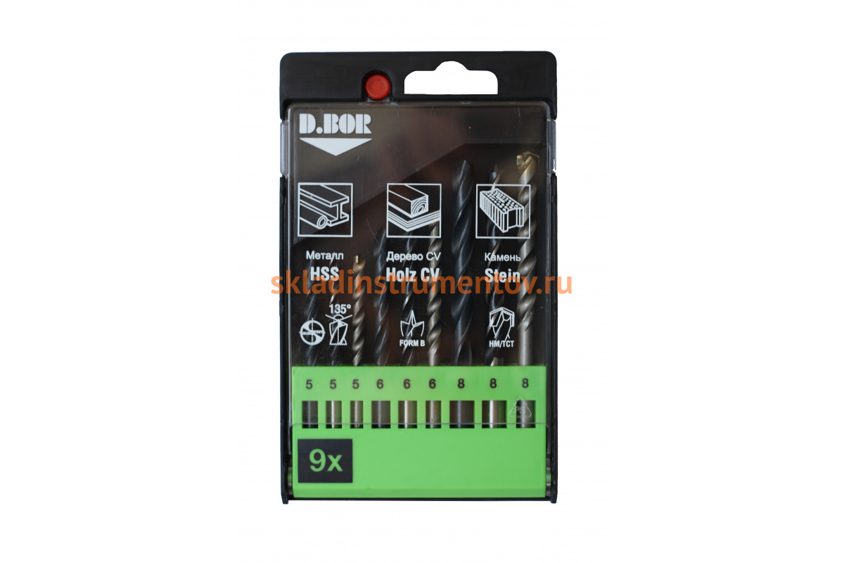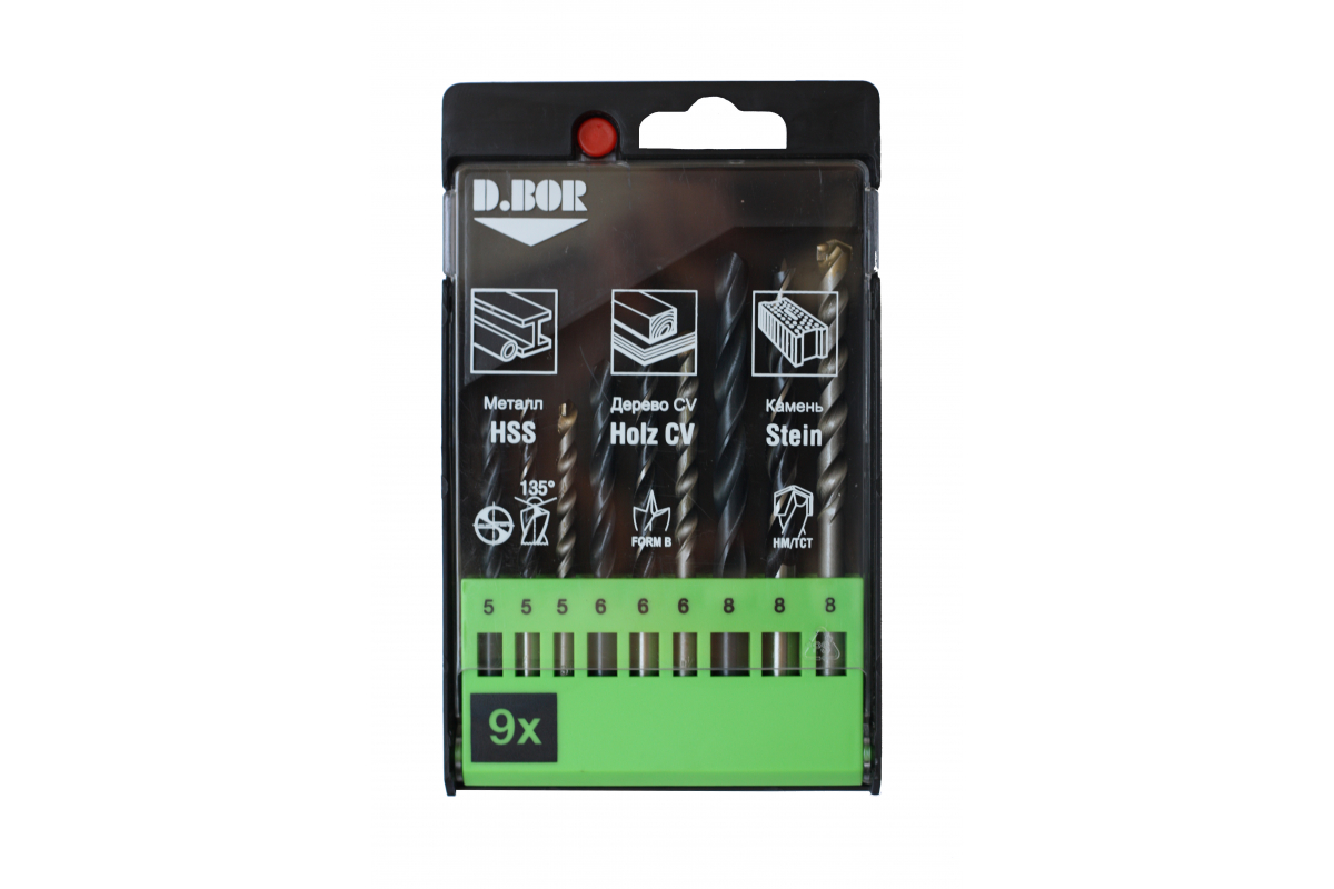 —Набор сверл Хобби (9 шт, 5-8 мм) по металлу, камню, дереву D.BOR 175709304D