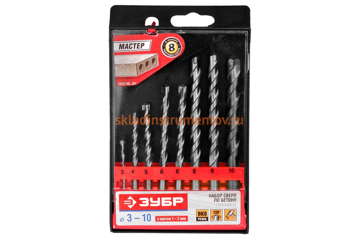 —Набор сверл ударных по бетону ПРОФИ (8 шт; 3-10 мм) Зубр 2922-H8