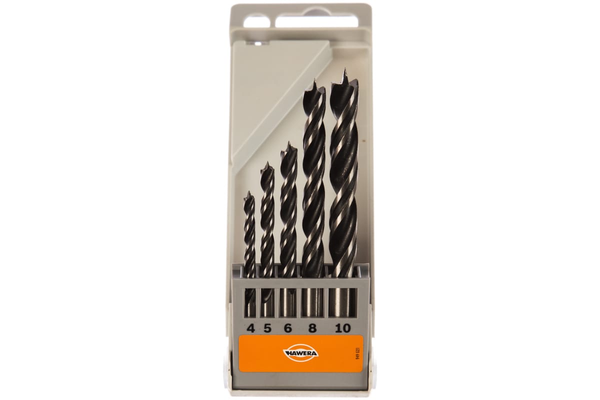 Набор спиральных сверл SUPER HAWERA F00Y124061 применяется для сверления сквозных и глухих отверстий в древесине. Сверла изготовлены из стали высокого качества. Конструкция предусматривает простой и быстрый отвод стружки. Центрирующее острие повышает точность и качество сверления. В набор входит 5 сверл: 4 мм; 5 мм; 6 мм; 8 мм; 10 мм. Тип хвостовика — цилиндрический. Упаковка — пластиковая кассета.