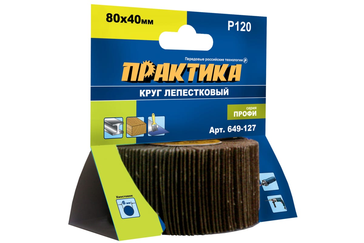 Круг лепестковый с оправкой (80х40 мм; P120) ПРАКТИКА 649-127