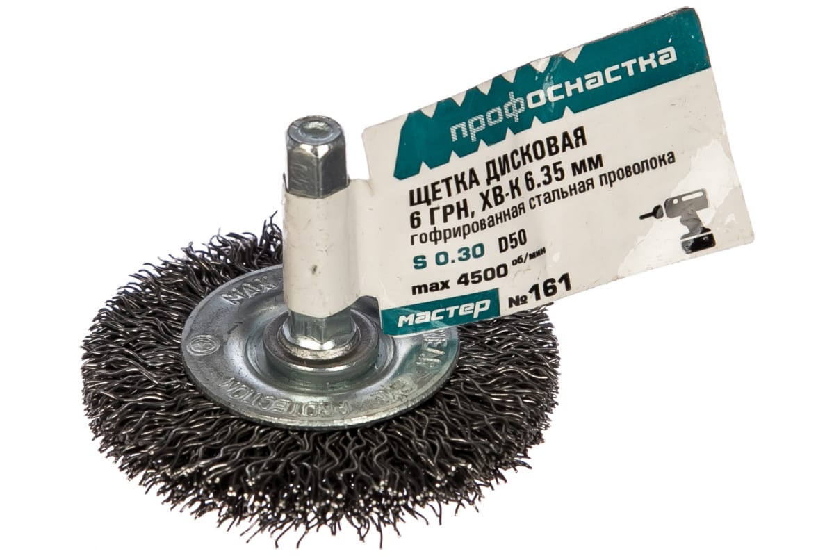 Щетка дисковая Мастер 161 Профоснастка 20204001 предназначена для шуруповертов. Применяется для удаления ржавчины, окалины и краски. Щетка имеет стальную гофрированную проволоку. Диаметр проволоки – 0.3 мм. Максимальное количество оборотов – 4500 об/мин. Хвостовик – шестигранный.