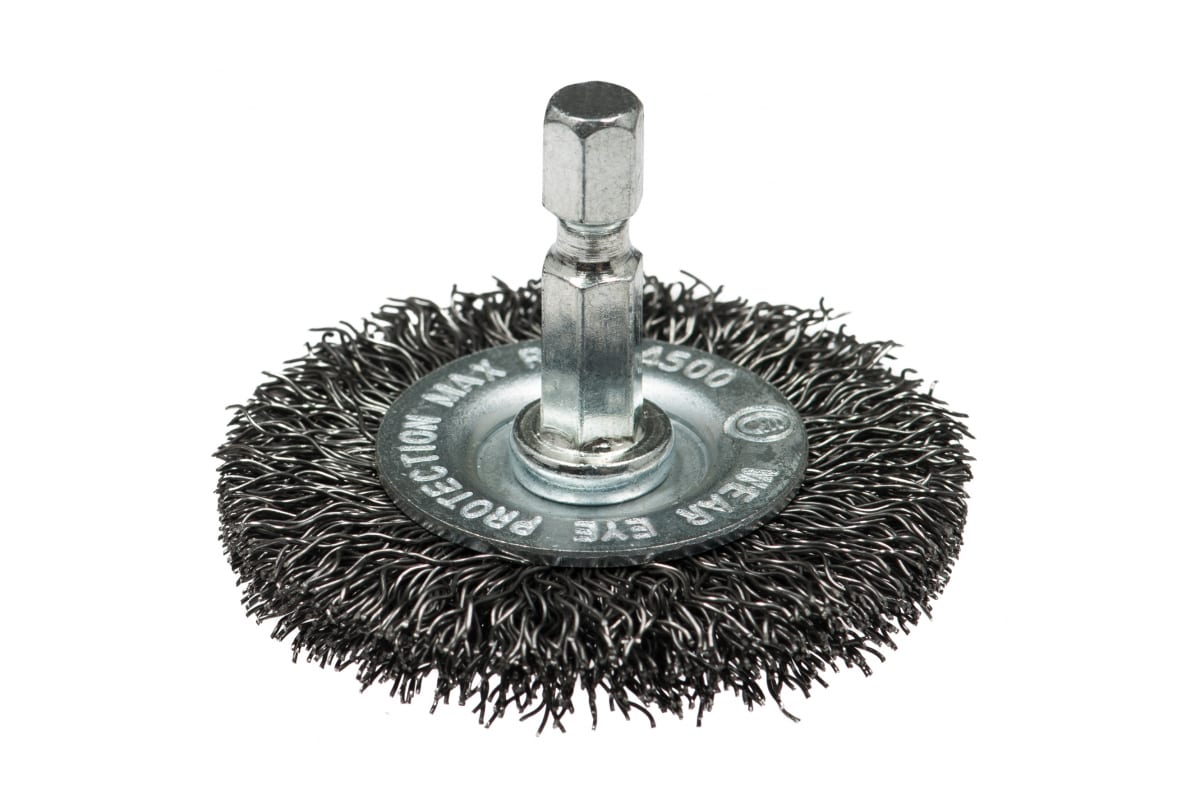 Щетка дисковая Мастер 163 Профоснастка 20204003 предназначена для шуруповертов. Применяется для удаления ржавчины, окалины и краски. Щетка имеет стальную гофрированную проволоку. Диаметр проволоки – 0.3 мм. Максимальное количество оборотов – 4500 об/мин. Хвостовик – шестигранный.