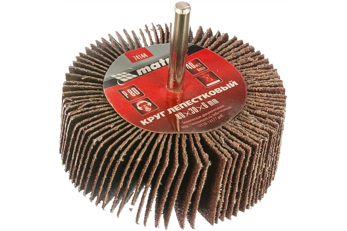 Круг лепестковый (80x30x6 мм; P80) для дрели MATRIX 74144