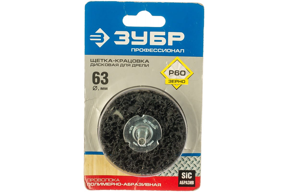 Щетка дисковая Зубр 35162-063_z01 применяется с дрелью. Используется для зачистки поверхности стальных изделий от окалины, ржавчины, въевшейся грязи. Подходит для грубой, агрессивной обработки. Рабочая часть состоит из нейлоновой проволоки с абразивным покрытием. Толщина проволочного слоя 15 мм.