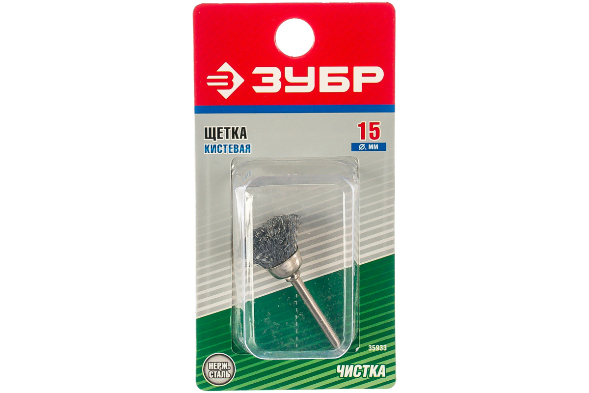 —Кистевая щетка Зубр на шпильке из нержавеющей стали d 15x3.2 мм L 42 мм 35933—