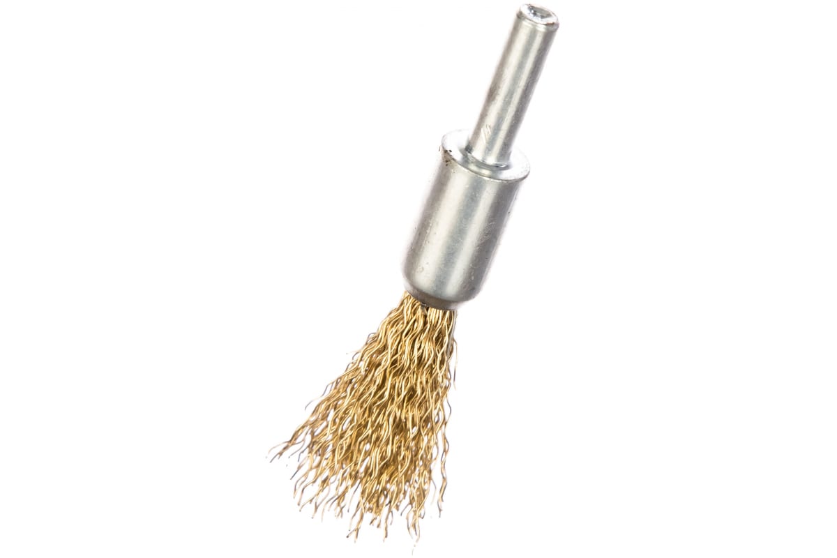 Концевая щетка Энкор 51501 является сменным элементом для дрелей. Применяется для очистки различных поверхностей от ржавчины, краски, заусенцев, а также для шлифовки. Рабочая часть оснастки представляет собой витую стальную проволоку с латунным покрытием.