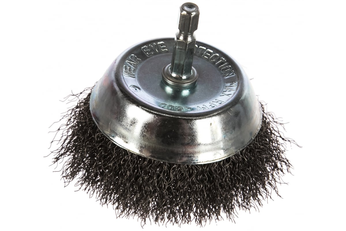 Чашеобразная щётка №085 Атака 22389 является сменным элементом для дрелей. Применяется для зачистки от лака, краски и ржавчины различных поверхностей и изделий. Рабочая часть состоит из гофрированной стальной проволоки. Хвостовик — шестигранный. Максимальная скорость вращения — 4500 об/мин.