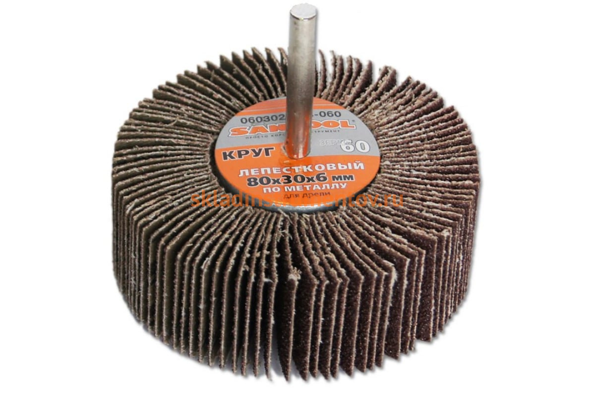 Круг лепестковый SANTOOL 060302-003-060 устанавливается в патрон дрели, используется для шлифования, обработки внутренних поверхностей, сварных швов и других подобных операций по металлу.