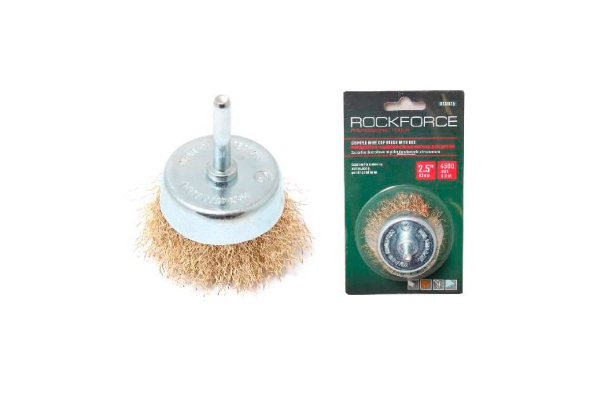 —Кордщетка чашеобразная латунная для дрели 75 мм, в блистере ROCKFORCE RF-BCR003