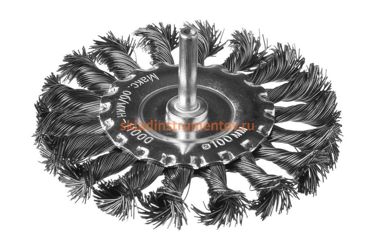 —Щетка дисковая со шпилькой (100 мм; жгутированные пучки стальной проволоки 0.5 мм) DEXX 35108-100