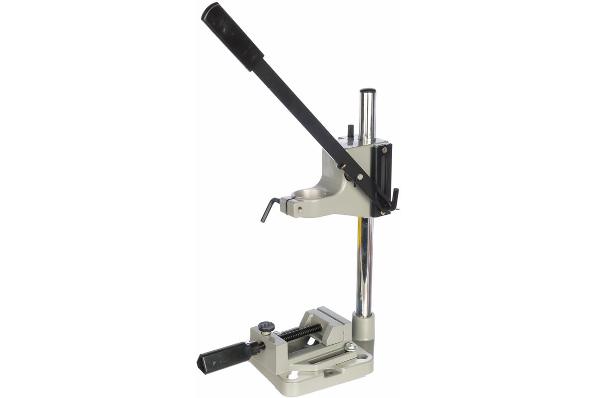 Станок с тисками для дрели STAYER 32240 - специальное устройство высотой 400 мм для крепления ручных электродрелей в вертикальном положении. В конструкции также предусмотрены тиски для фиксации различных заготовок. Станок может крепиться к поверхности стола или верстака при помощи четырех болтов. Направляющая и ручки изготовлены из стали, корпус из силумина.