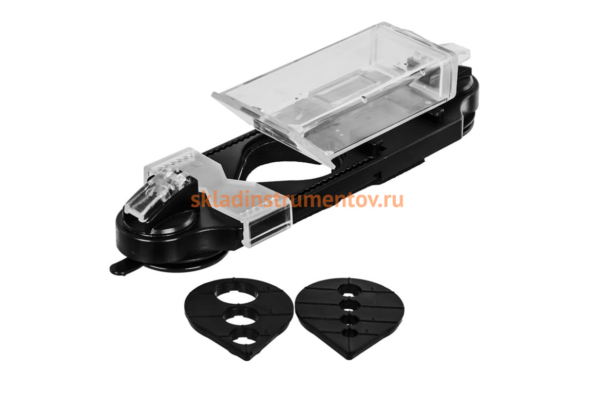 Кондуктор ПРАКТИКА 247-033 применяется совместно с алмазными коронками ПРАКТИКА для быстрого и точного сверления отверстий диаметром 5-15 мм в керамической или кафельной плитке. Оснащен емкостью для подачи воды и присоской, с помощью которой надежно удерживается на обрабатываемой поверхности.