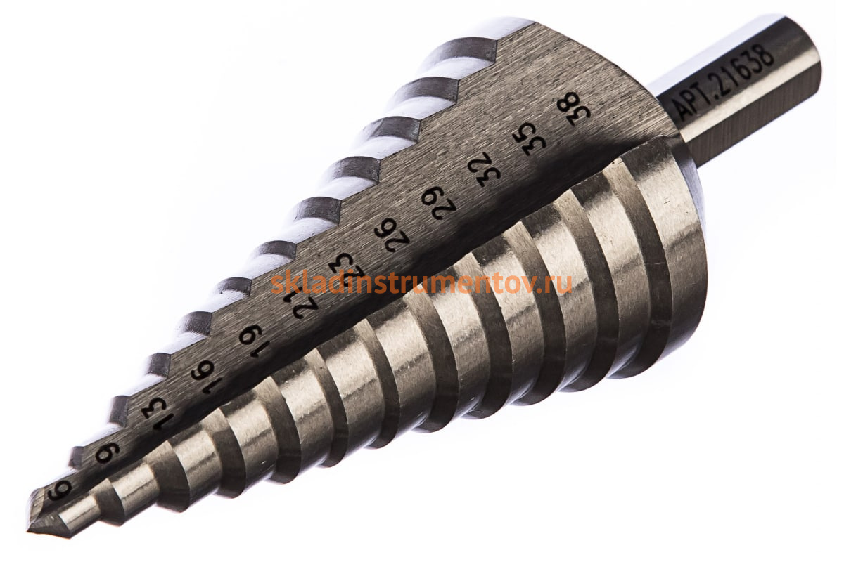 - Диаметр ступеней 6; 9; 13; 16; 19; 21; 23; 26; 29; 32; 35; 38 мм;