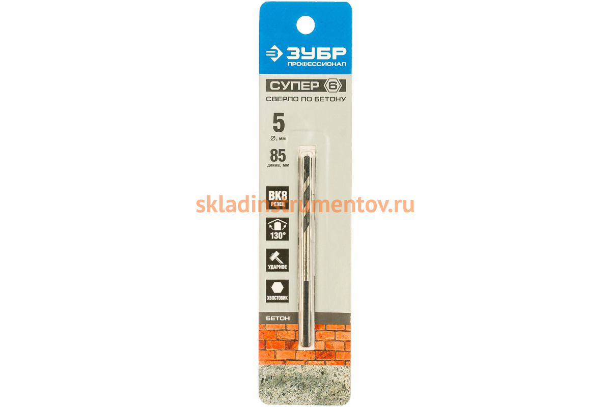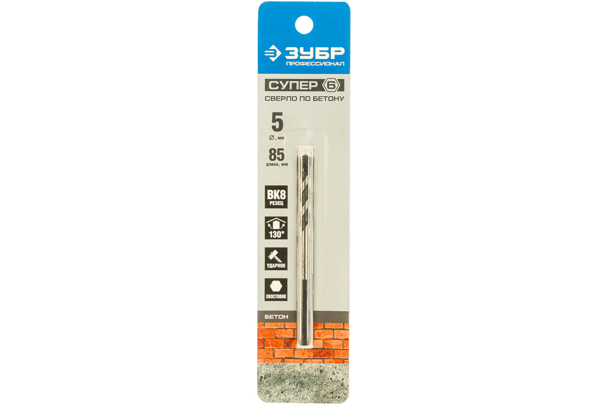 Сверло Зубр 2916-085-05 серии "Супер-6" используется совместно с ударными дрелями для сверления конструкций из бетона, кирпича, камня, плотных известняков. Имеет твердосплавный наконечник марки ВК8. Использование данного сплава позволяет существенно повысить скорость обработки и рабочий ресурс сверла. П-образная форма спирали обеспечивает эффективный и быстрый отвод сверлильной пыли из зоны обработки. Угол заточки при вершине 130 о. Шестигранный хвостовик способствует надежному закреплению сверла в патроне. Сверло изготовлено из высокопрочной стали, имеет хорошую износостойкость.