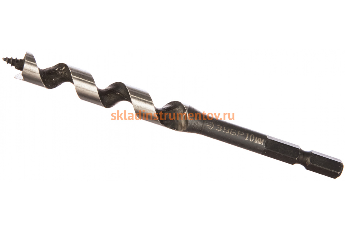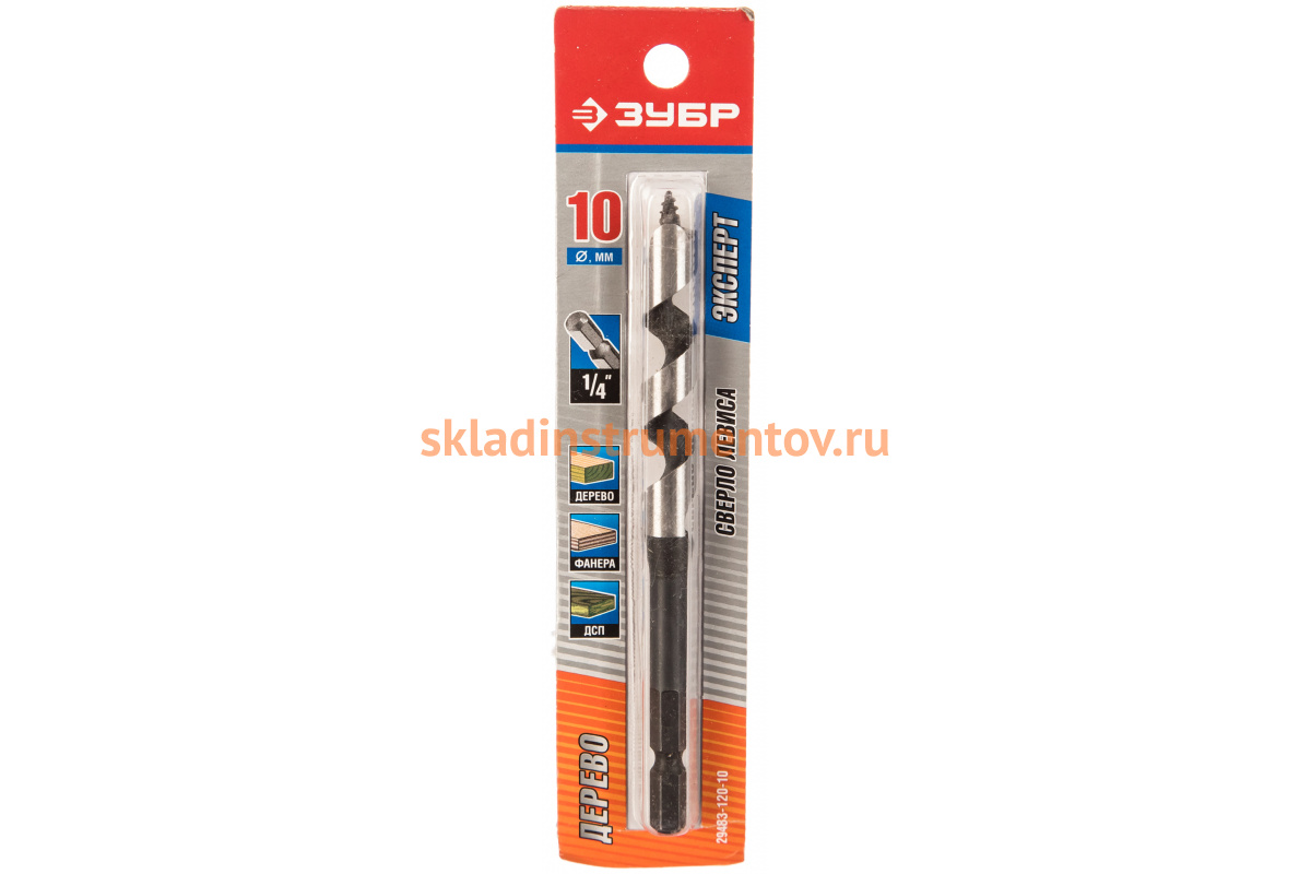 Змеевидное сверло ЗУБР 29483-120-10 используется с аккумуляторными и электродрелями для сверления отверстий в заготовках из таких материалов, как фанера, ДСП, дерево твердой и мягкой породы. Материал сверла инструментальная сталь повышенной прочности, которая подходит для изготовления сверл, сохраняя их режущие качества и долгий срок службы. С помощью шестигранного хвостовика 1/4" сверло надежно закрепляется в патроне дрели. Специальная форма шнека и центрирующего острия обеспечивают быстрый заход в материал и выход без заклинивания.